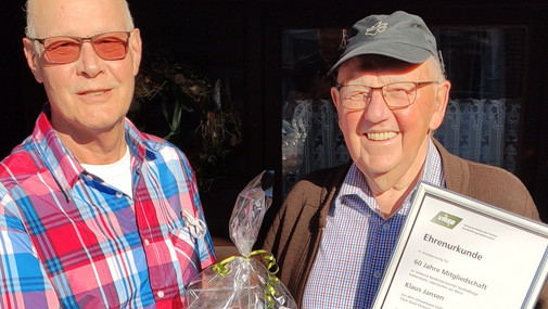 Der Ortsverband würdigt Klaus Jansen, der seit 60 Jahren dem VNSB die Treue hält.