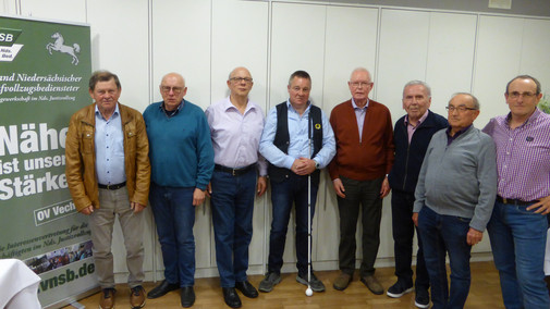 Foto: Ortsverband Vechta Alle Geehrten Mitglieder von links: Leander Kuper (40 Jahre), Eduard Bührmann (40 Jahre), Peter Kohls (25 Jahre), Bernard Meyer (40 Jahre), Theobald Janssen (60 Jahre), Horst Müller (60 Jahre), Karl-Heinz Stukenborg (50 Jahre) und Vorsitzender Engelbert Janßen