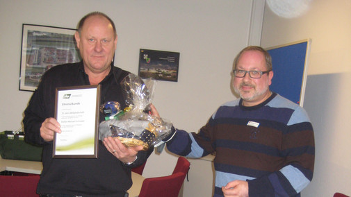 Stefan Schröder zum Ende seiner Dienstzeit für 25-jährige Mitgliedschaft im Verband geehrt.